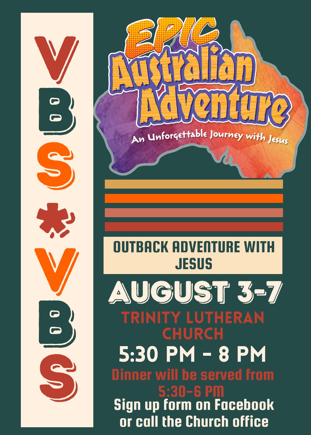 Vacation Bible begins August 3 through August 7.