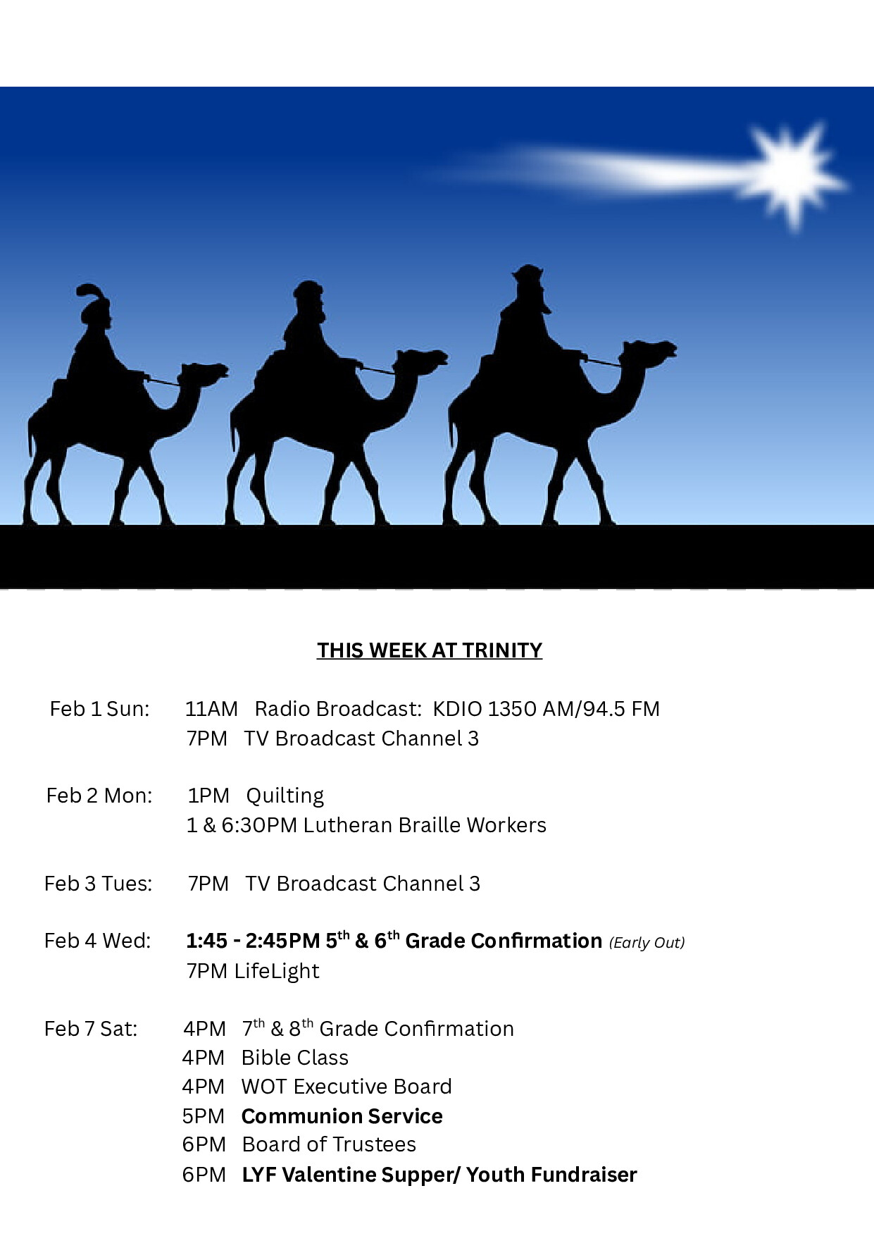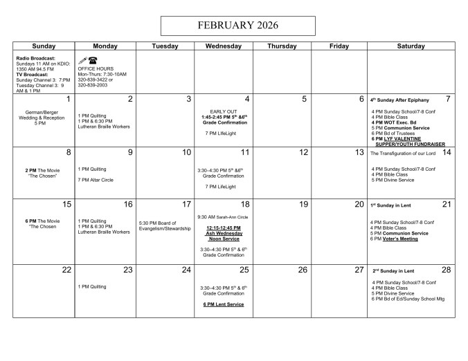CALENDAR This Week At TrinityFebruary Items of InterestLenten & Easter Season(Click on Calendar to Enlarge) Share this: Share on X (Opens in new window) X Share on Facebook (Opens in new window) Facebook Like Loading...